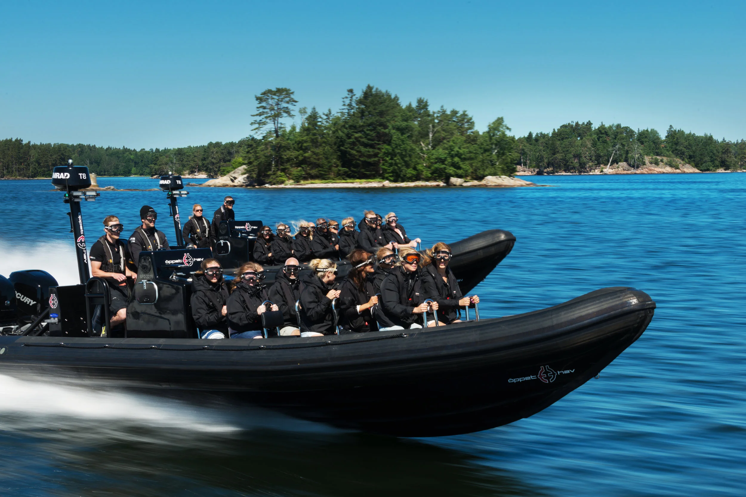 Följ med på en fartfylld upplevelse till Fjäderholmarna. Äventyret börjar i Stockholms hamn där ni kliver ombord på en RIB-båt. Den tar ni er ut genom skärgården, passerar Vaxholm och får uppleva både fart och fantastiska vyer längs vägen.